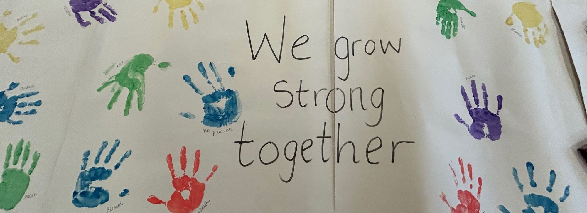 - Our EYFS children created a colourful handprints banner focused on growing strong together. The handprints reminded us that we are all created by God and that even the smallest hands are valued and loved within his family.